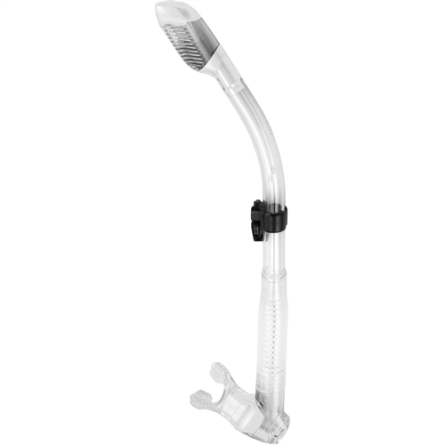 This is the original dry snorkel float valve design and it’s as close to “perfect” out there! The mouthpiece is also ball-jointed for a custom fit. The snorkel also features a quick-release mask attachment clip.